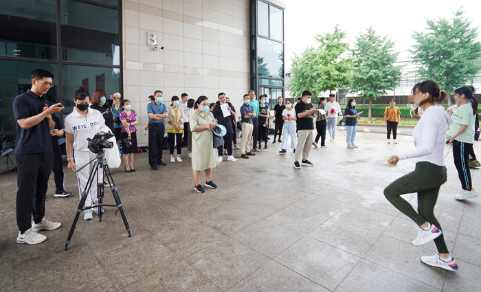 为迎接党的二十大胜利召开,保障疫情期间职工的身心健康,丰富职工业余文化生活,金年会手机版注册登录京区工会于7月12日举办了“喜迎二十大 健康新生活——跳绳、踢毽子比赛”。院京内9支代表队近60名队员参赛。此次活动得到了各单位各部门领导的高度重视和广大职工的大力支持。院分党组成员、纪检组组长、京区工会主席周戡亲临比赛现场。